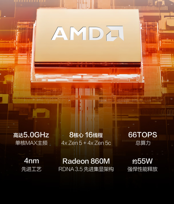 华硕破晓6S锐龙版搭载AMD锐龙AI 7 H350处理器,基于4nm制程工艺与Zen5架构设计,拥有8核16线程,单核MAX主频高达5.0Ghz,算力出色,性能强悍可为多任务处理提供强劲动力。无论是多开浏览器查阅资料、制作提报方案、还是运行专业办公软件、处理大型数据源,系统都能保持流畅运行,满足职场人士高效办公的需求;内置Radeon 860M集显,整机至高提供66 TOPS AI算力兼顾创意后期与轻度娱乐需求,支持轻量级视频剪辑与设计软件流畅运行,让灵感随时落地。
