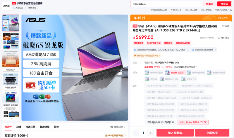 立即体验华硕破晓6S锐龙版:咨询华硕商城及华硕京东自营官方旗舰店