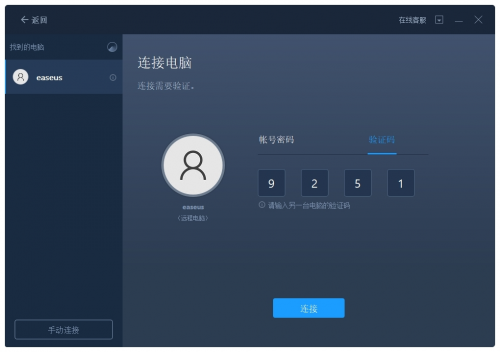 步骤1.启动易我电脑迁移(EaseUS Todo PCTrans Pro),选择“电脑到电脑”,找到与之配对的电脑,完成验证,点击“连接”按钮进行连接。