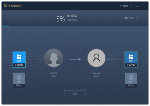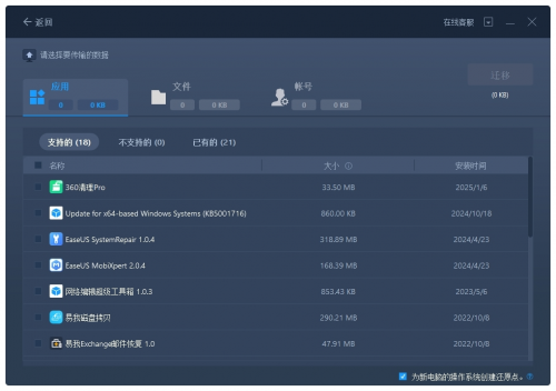 如果传输的数据很多,或者体积很大,您可能需要一种更有效的方法。易我电脑迁移(EaseUS Todo PCTrans Pro)软件就是您所需的帮助,它可以使传输数据这个过程更简单高效。它不仅支持在两台电脑之间传输文件,还支持迁移应用程序、软件、游戏、用户账户和设置,满足不用的传输需求。