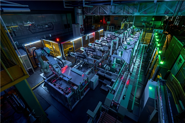 “灯塔”之光,首先照亮的是智造的精度与效率。蒸发器和冷凝器这“两器”是中央空调核心部件,海信中央空调黄岛工厂在此领域建成全球唯一的“黑灯生产车间”,通过AI视觉与机器人柔性生产,实现全工序自动化。多点焊接自动化技术将焊接不良率下降57%,物流环节首创“天车”空中即时配送系统,替代传统悬挂链方式,提高物流效率。